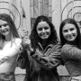 Three girls axe throwing at the Agawam Axe House. Photo by Anneliese Townsend